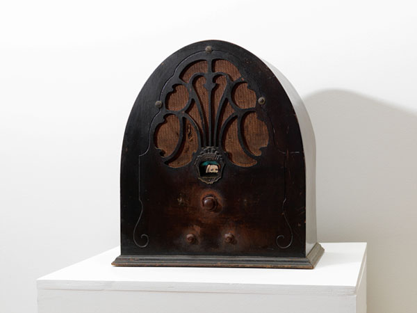 Works Exhibited 0020 ◄ Back Next ► Picture 8 of 20 Nam June Paik Majestic, 1975 reset 1996 Single channel television set inside antique radio 17.5” x 16”